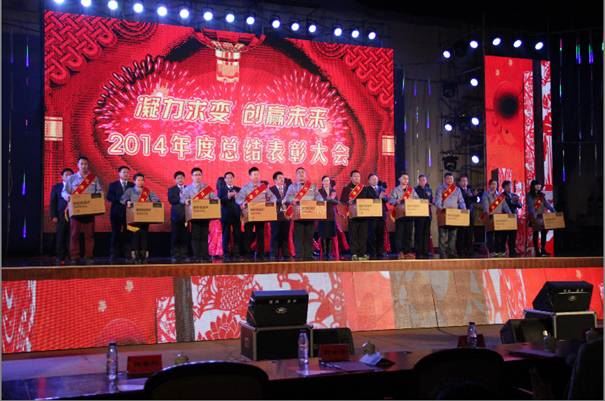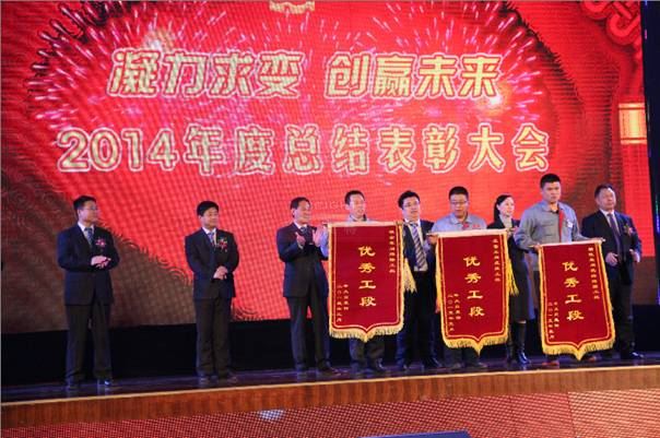 为了答谢集团员工一年来的辛勤工作、表彰优秀、鼓舞士气、增强凝聚力、规划2015年集团发展方向,2014年12月30日,集团举办了盛大的“凝力求变,创赢未来”为主题的2014年度总结表彰大会暨迎新春文艺汇演,会上表彰了70余名来自各岗位的集团优秀员工和3个年度优秀团队,集团副总裁张怀永、温仁东、吴世军分别做了工作报告,集团总裁吴留明就2014年集团的发展和2015年经济形势以及集团发展规划作了重要讲话。